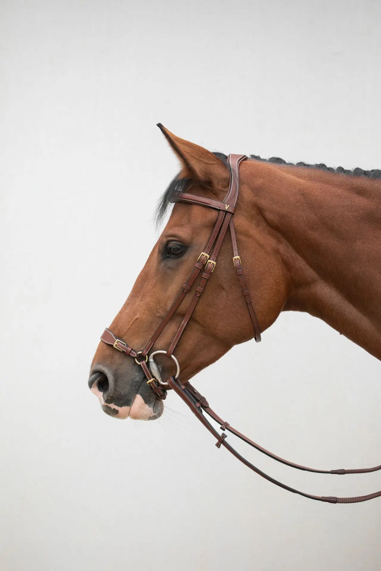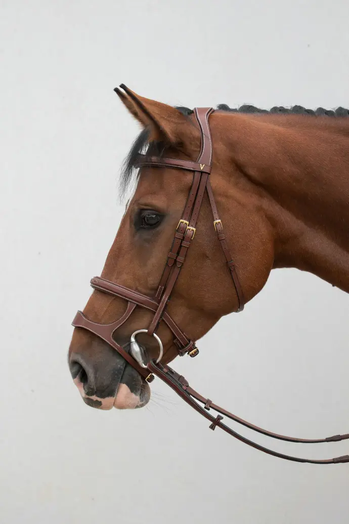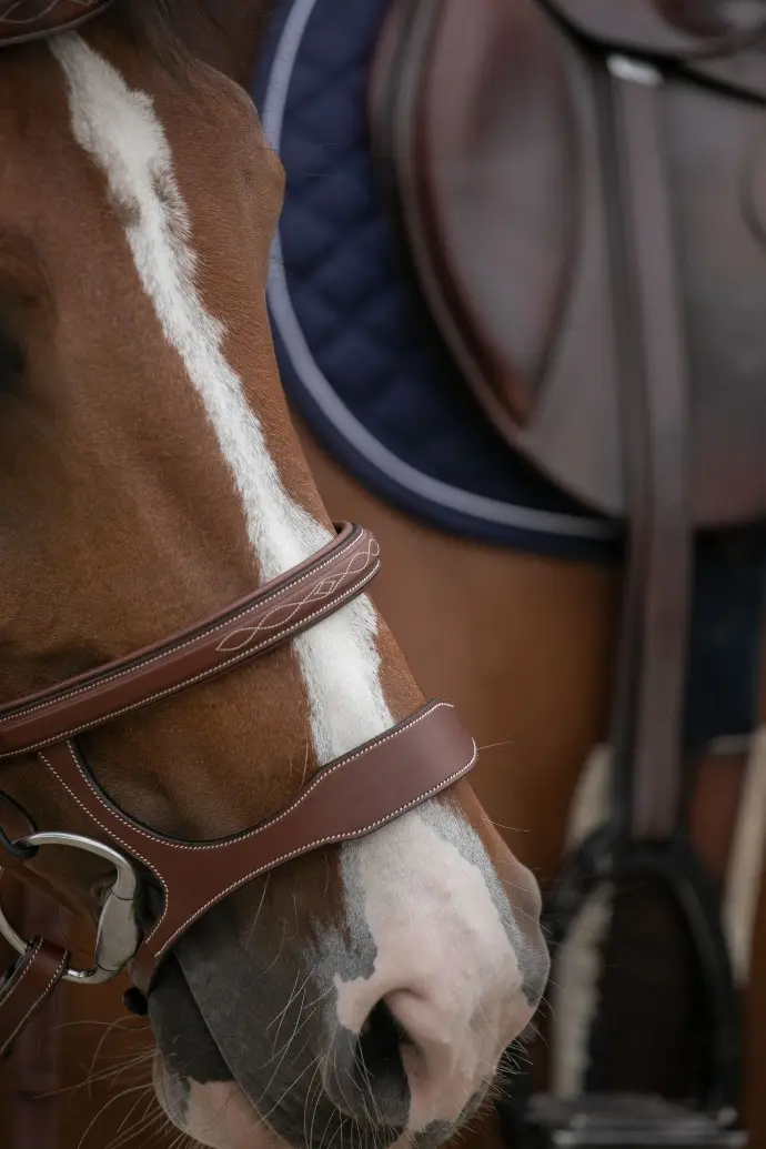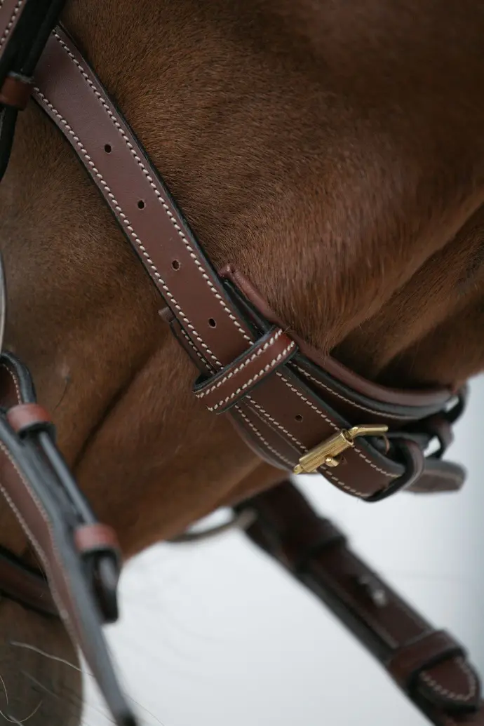 Our bridles are perfectly matched to our reins and martingales. This unique collection guarantees perfect harmony in terms of finishing and buckles, for an elegant and consistent look.